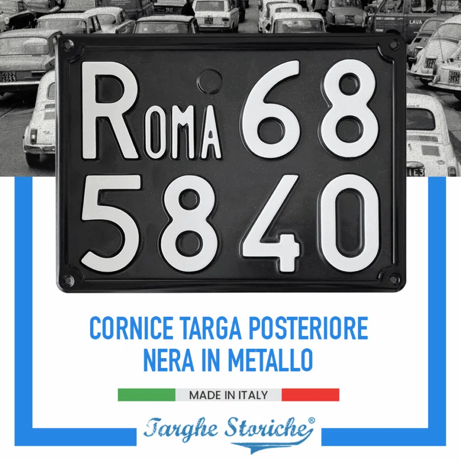 MADE IN ITALY: Ogni portatarga prodotto da Targhe Storiche Srl è realizzato artigianalmente in Italia, sinonimo di qualità e tradizione