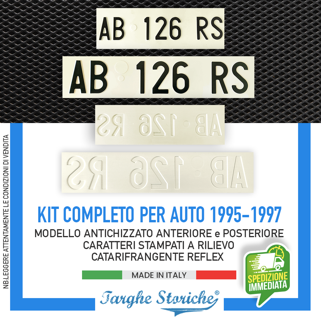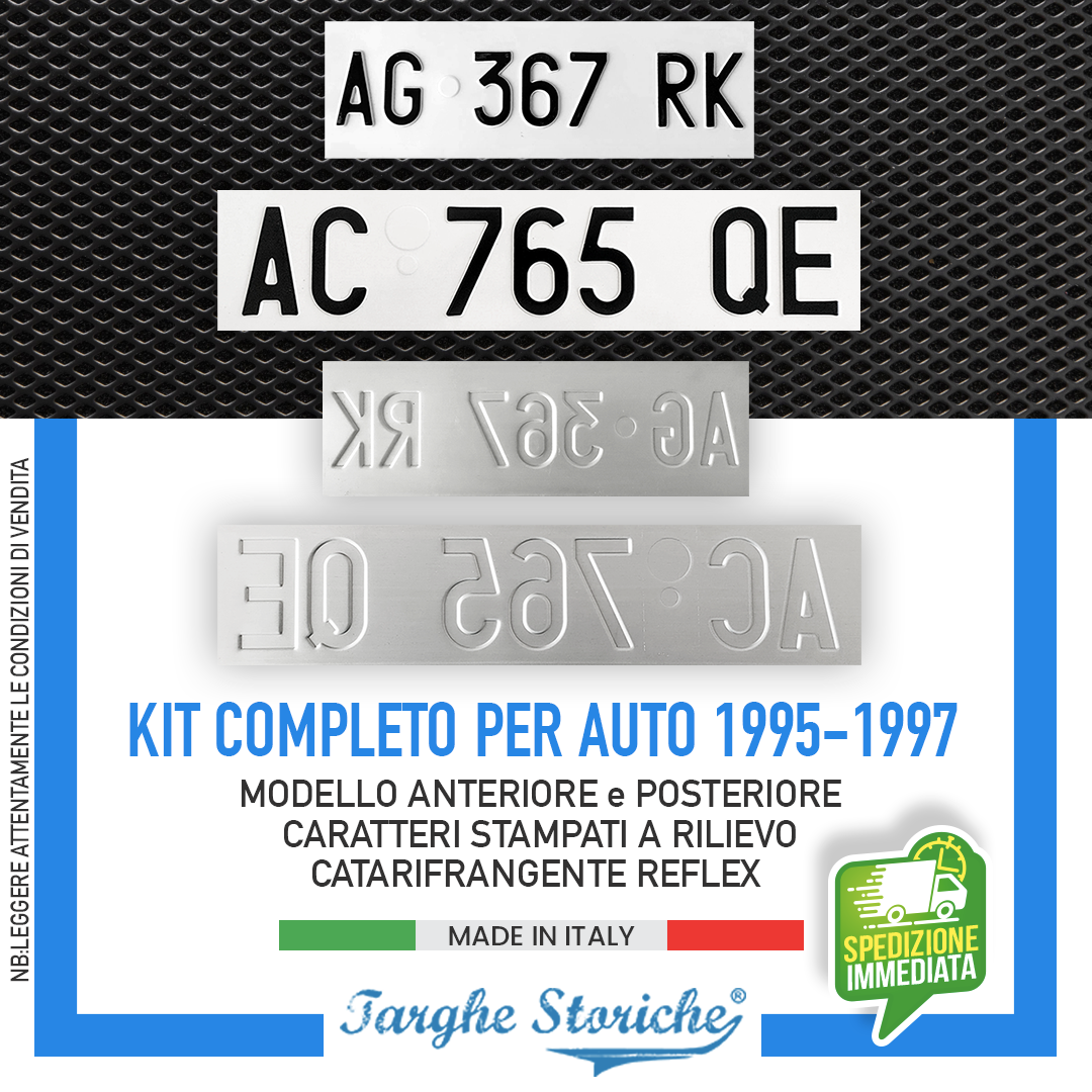 TARGHE D’EPOCA IN ALLUMINIO: Realizzate in alluminio resistente e durevole, fedeli riproduzioni delle targhe auto dal 1995 al 1997