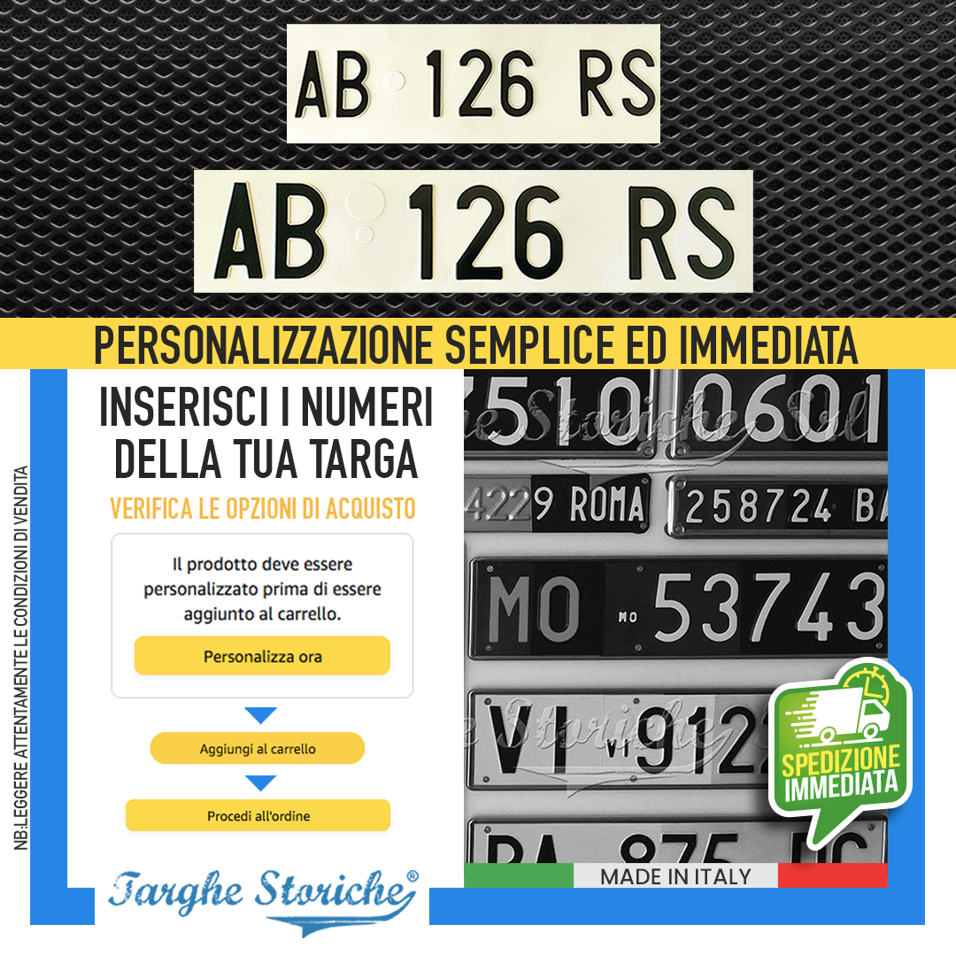 TARGHE PERSONALIZZATE: Personalizzazione completa di lettere e numeri per adattarsi al tuo veicolo d’epoca