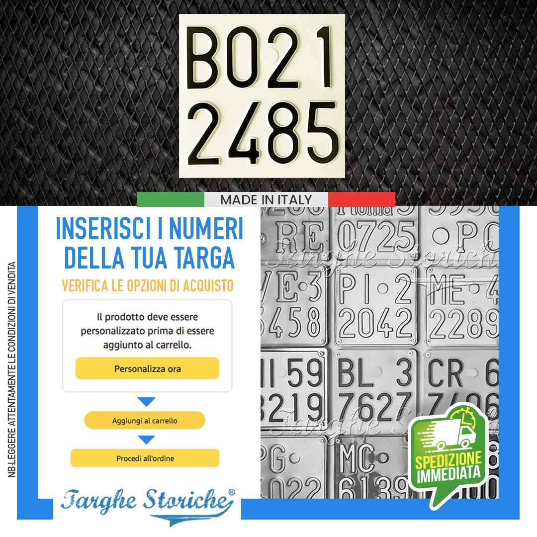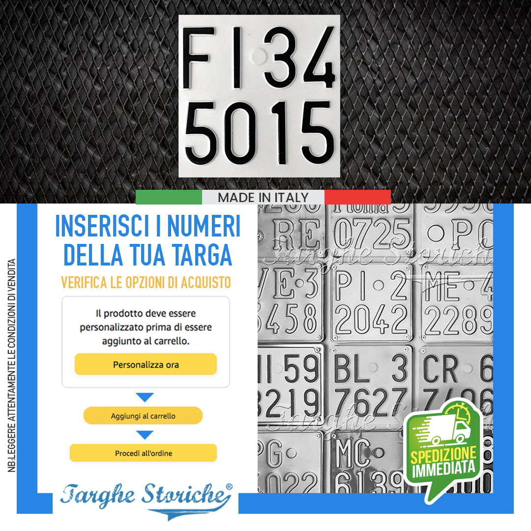 VASTA SCELTA DI PRODOTTI: Nello store di Targhe Storiche troverai un’ampia gamma di repliche di targhe posteriori, anteriori per auto, moto e targhe ripetitrici. Qualunque sia la tua necessità, troverai la soluzione perfetta